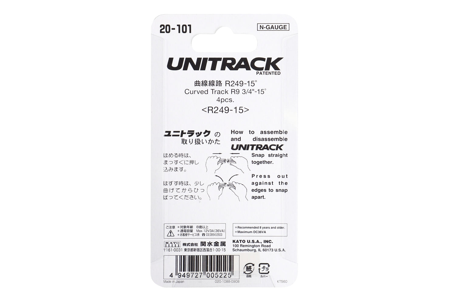 Kato N R249-15 Curve Track 4pc 20101