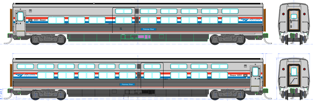 Kato HO Scale Amtrak Viewliner II Sleeper Phase III #62501 Potomac River w/Pre-Installed Interior Lights