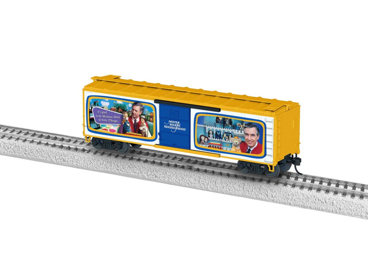 Grow your HO consist with this Mister Rogers Boxcar! ©2024 McFeely-Rogers Foundation. All rights reserved; © 2024 The Fred Rogers Company. All rights reserved; or similar notice.Opening doorsMetal wheelsMetal knuckle couplersWeighted for reliable operation