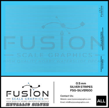 Fusion Scale Graphics is proud to officially announce our new line of metallic waterslide decals for modelers. With metallic gold and metallic silver printed at a stunning 2400x4800 DPI on our new dry ink system, you're sure to love the effects and the fine detail of these new prints with their true metallic shimmer.