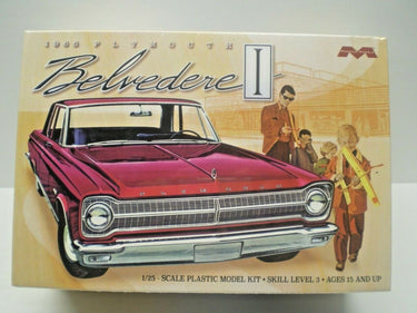 This is the Moebius Model 1/25 1965 Plymouth Belvedere Model Kit. The 65 Plymouth Belvedere was one of the most popular cars at the strip. This model can be built as either single or dual carb 426 Max Wedge, with optional mag wheels and choice of standard radials or drag radials. Recommended for experienced modelers only.