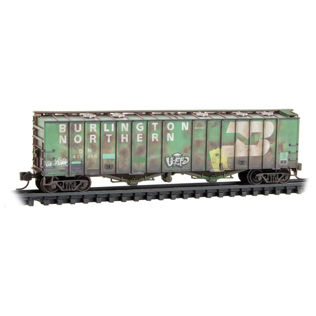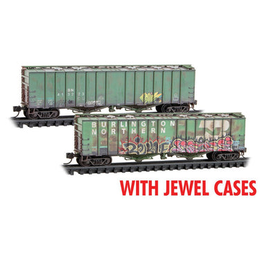 Micro Trains N Burlington Northern Weathered 2-Bay Airslide Hoppers 2-Pack RD# BN 413223, 413366