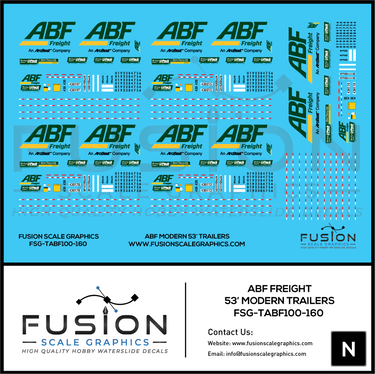 N Scale ABF Freight Modern 53' Truck Trailers Decal Set