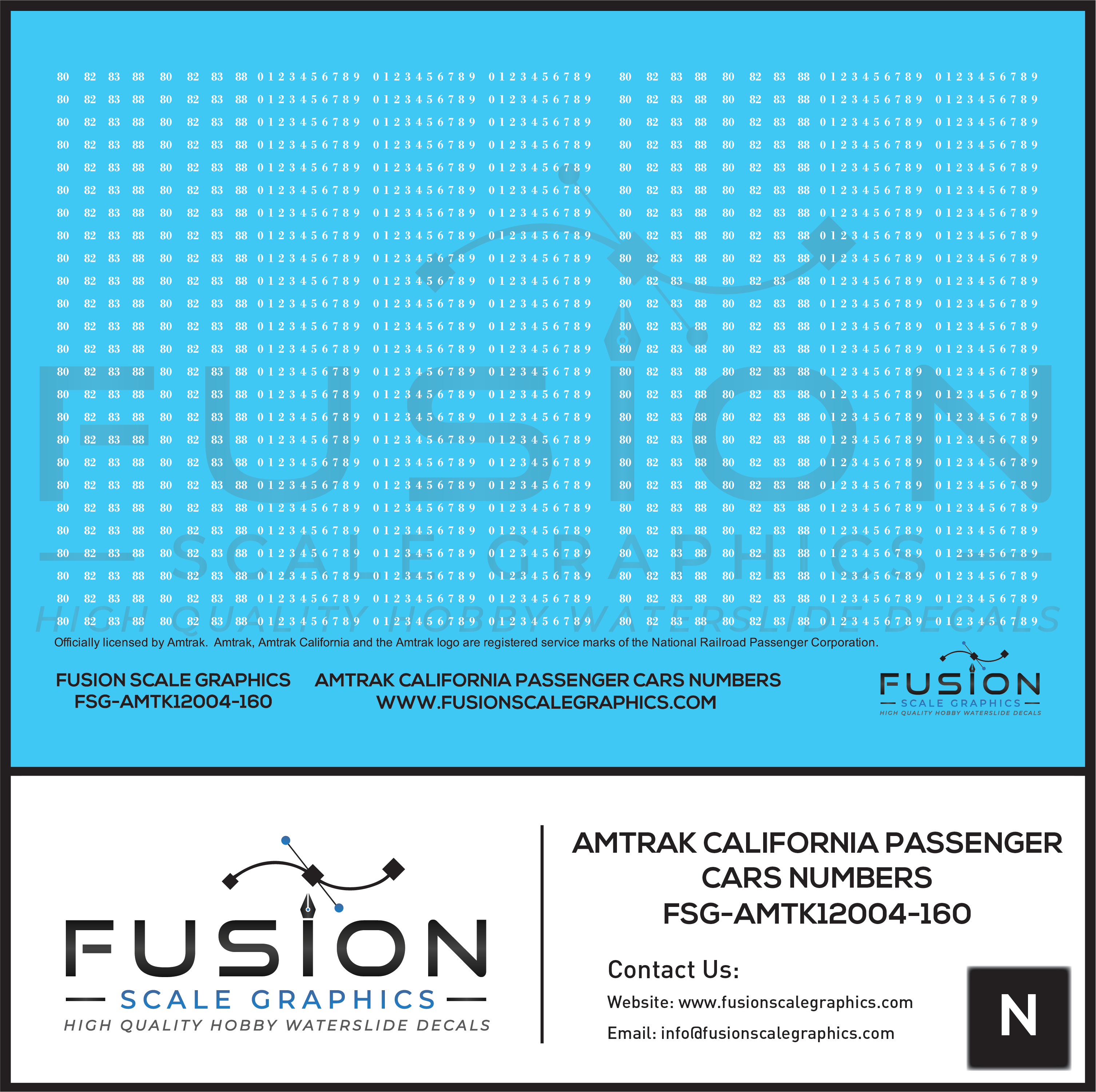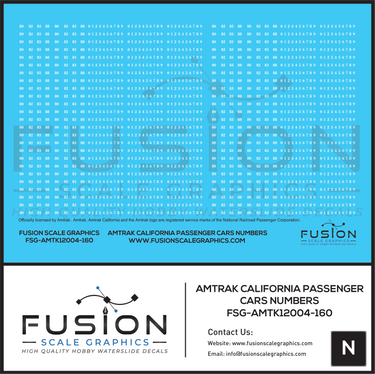 N Scale Amtrak California Passenger Car Numbers Decal Set