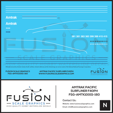 Home N Scale Amtrak Pacific Surfliner F40PH Locomotive Decal Set