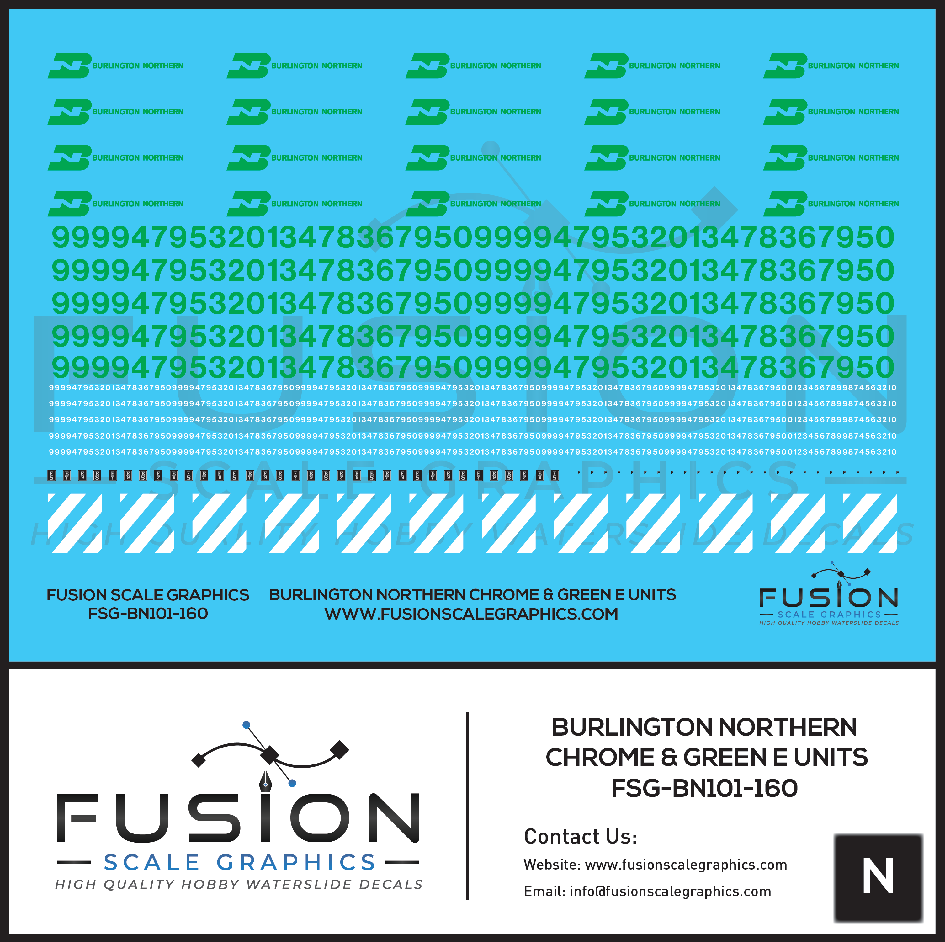 N Scale Burlington Northern Chrome & Green E8 E9 Locomotive Decal Set