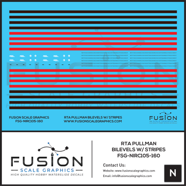 N Scale RTA Pullman BiLevel Cars Decal Set W/ Stripes