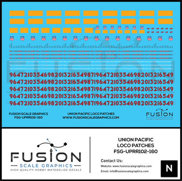 This sheet is perfect for patching ex SP, DRGW, SSW, CNW and many other locomotives purchased or inherited by mergers.