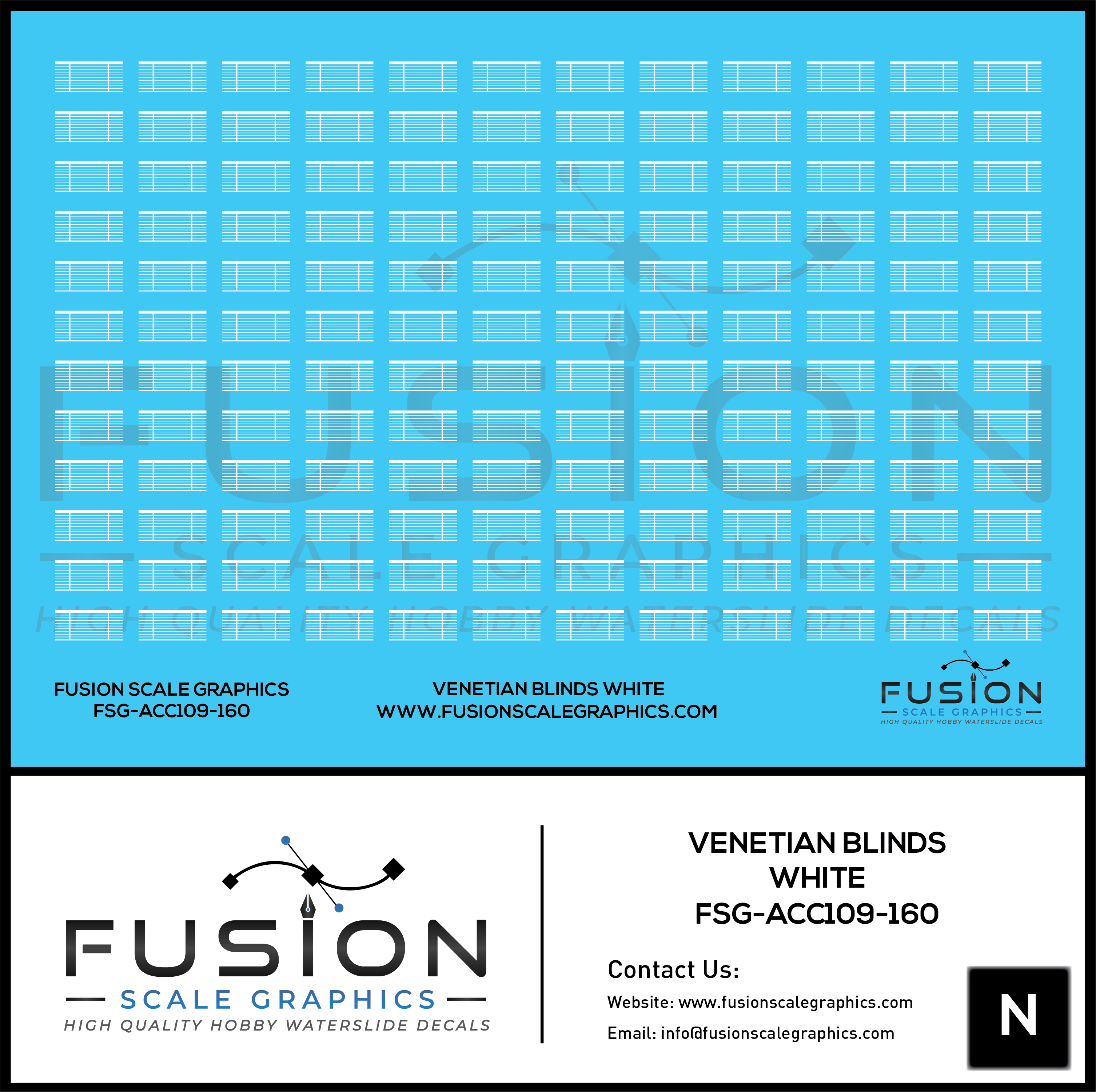 Home N Scale White Venetian Blinds for Passenger Cars Decal Set