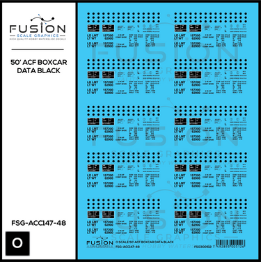 O Scale 50' ACF Boxcar Data Sheet Black Decal Set