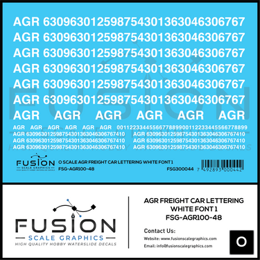O Scale AGR Freight Car Lettering Font 1 Decal Set