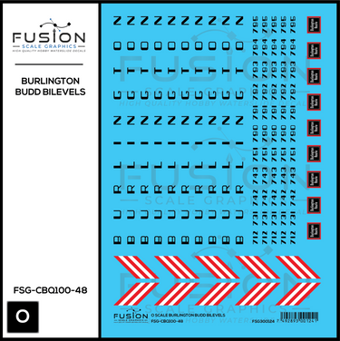 O Scale CBQ Burlington Budd BiLevels Decal Set