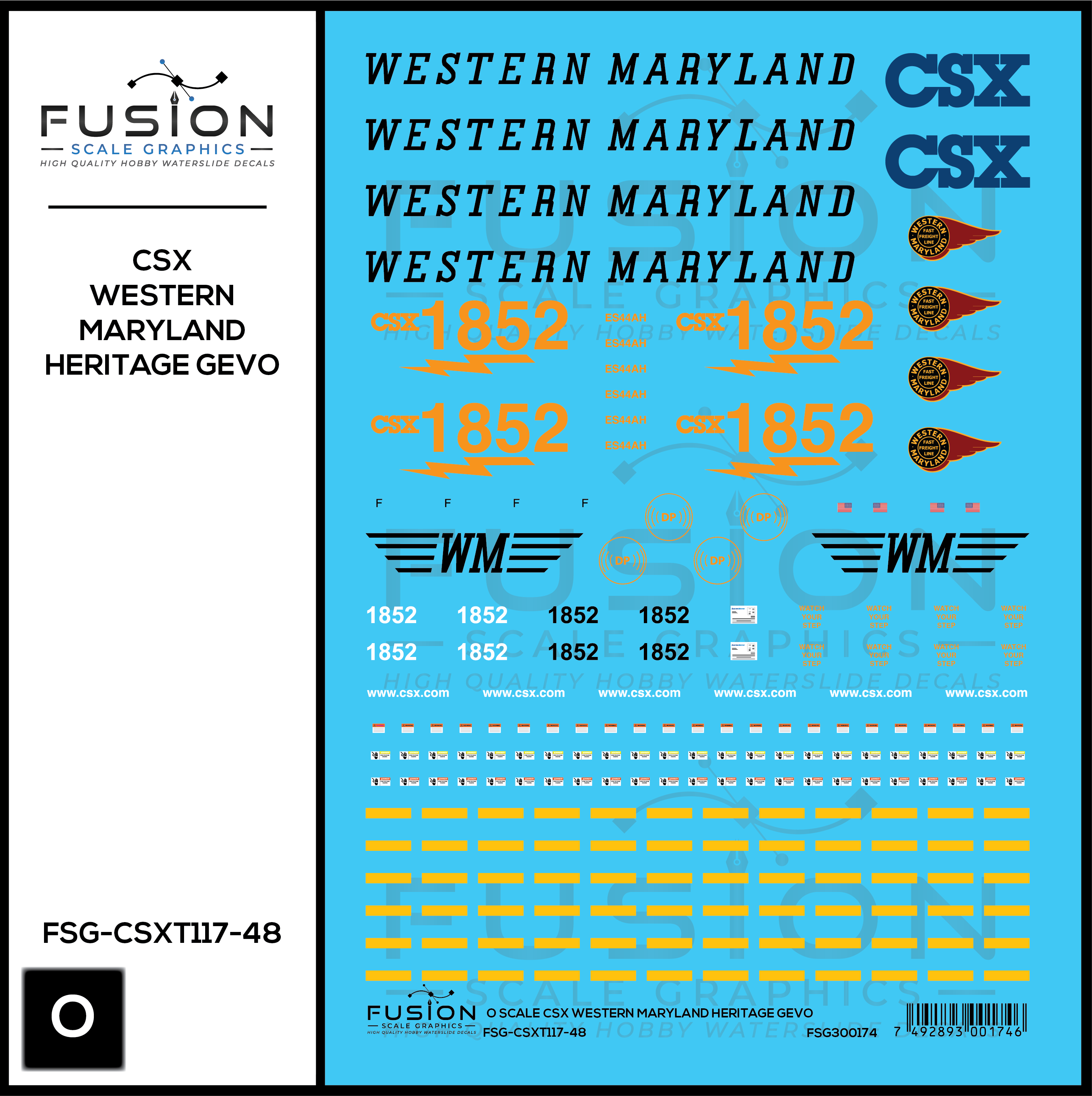 O Scale CSX Western Maryland Heritage GEVO Locomotive Decal Set