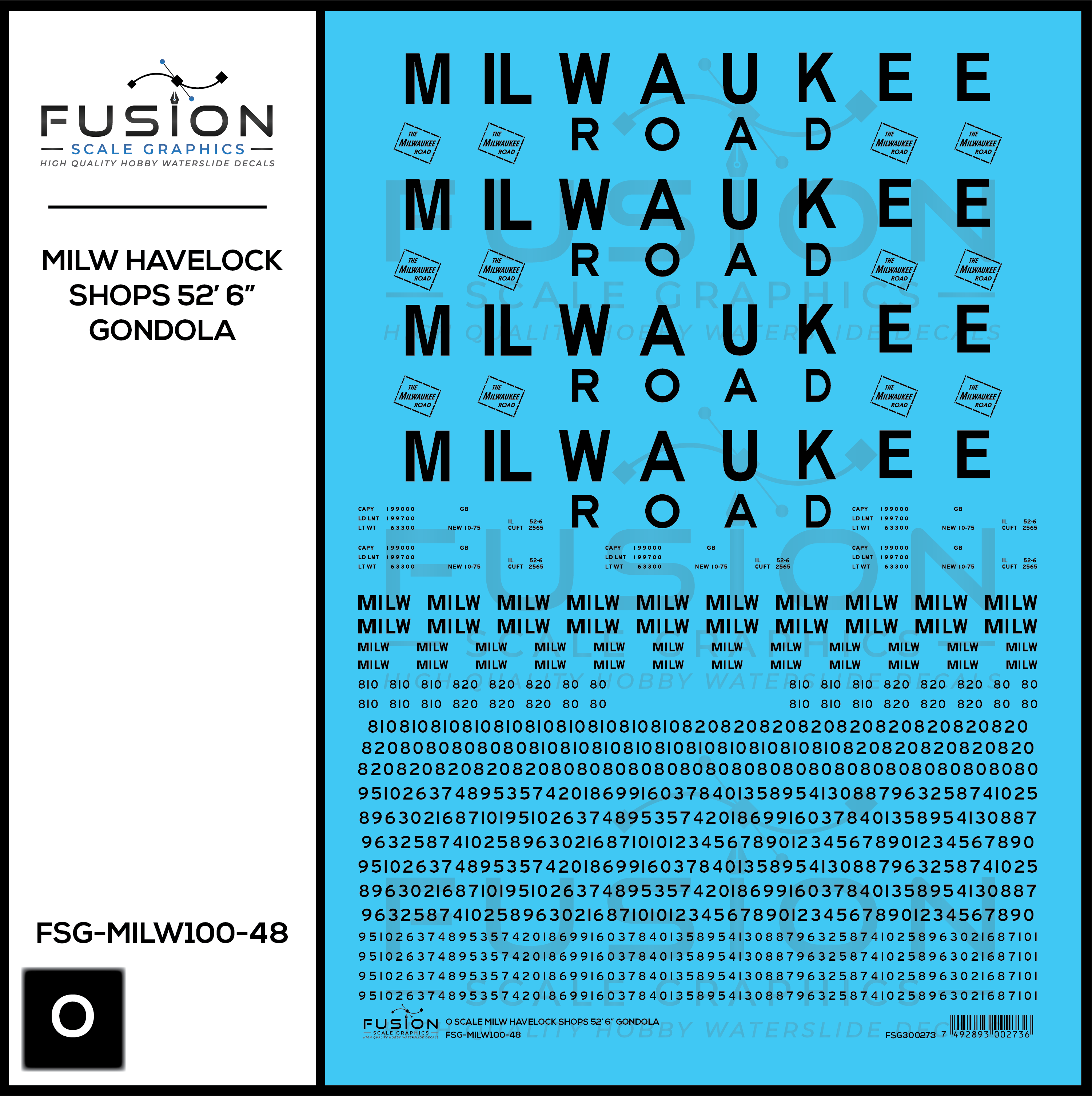 O Scale Milwaukee Road Havelock Shops 52' 6" Gondola Decal Set