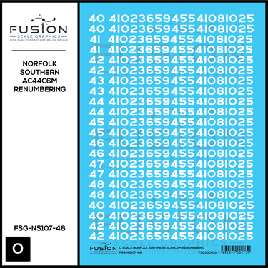 O Scale Norfolk Southern GE AC44C6M Locomotive Renumbering Decal Set