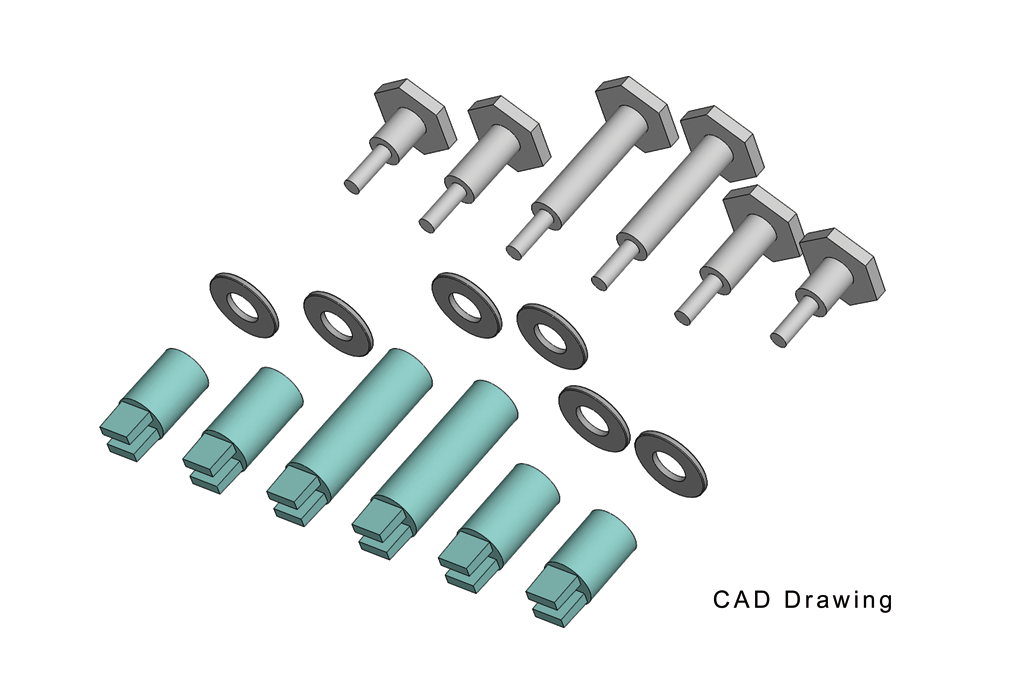 Set of 6 metal screw-type replacement crankpins. Nickel-plated screws. Fits small 36.5mm (1.44“) diameter starter set, 0-6-0T and “Mini-Mogul†loco wheels.