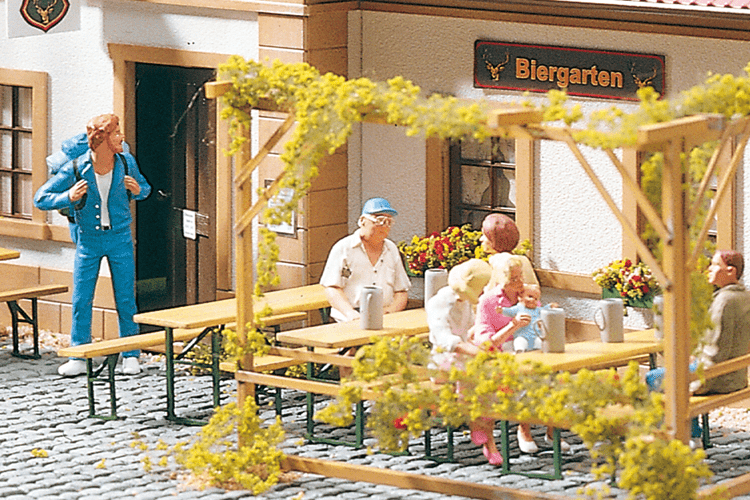 • Kit includes three tables, six benches and three garden seats.  Can be used to extend the "Beer Garden Cafe" or other kits and scenes.