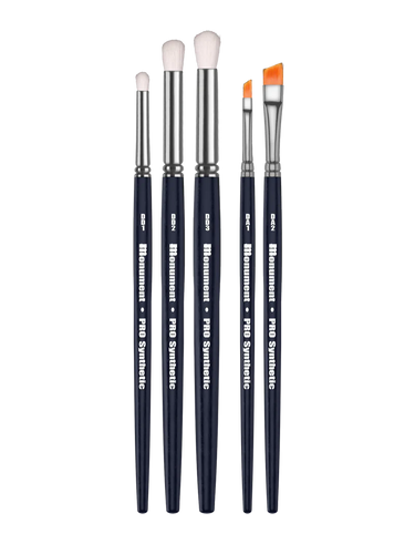 The ultimate PRO Synthetic Drybrush set! Combining all 5 of our drybrush range - DA1, DA2, DD1, DD2, and DD3. Angled and Domed for just about any type of texturing and blending needs.