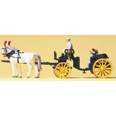 Preiser N Horse Drawn Open Black Coach w/Rider & Couple