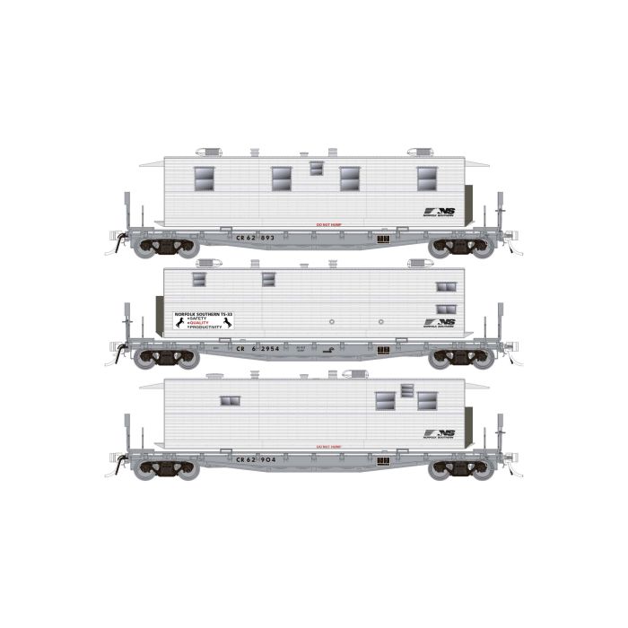Rapido HO Norfolk Southern MOW F30A 50ft Flat Car w/Camp Van 3 - Pack - RAP138104 - Fusion Scale Hobbies