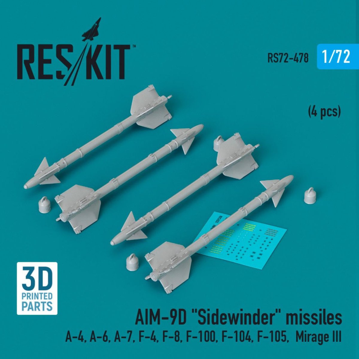 Reskit 1/72 Reskit AIM-9D Sidewinder missiles (4 pcs) (3D Printed) (1/72)