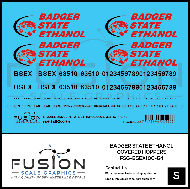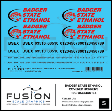 S Scale Badger State Ethanol Covered Hoppers Decal Set