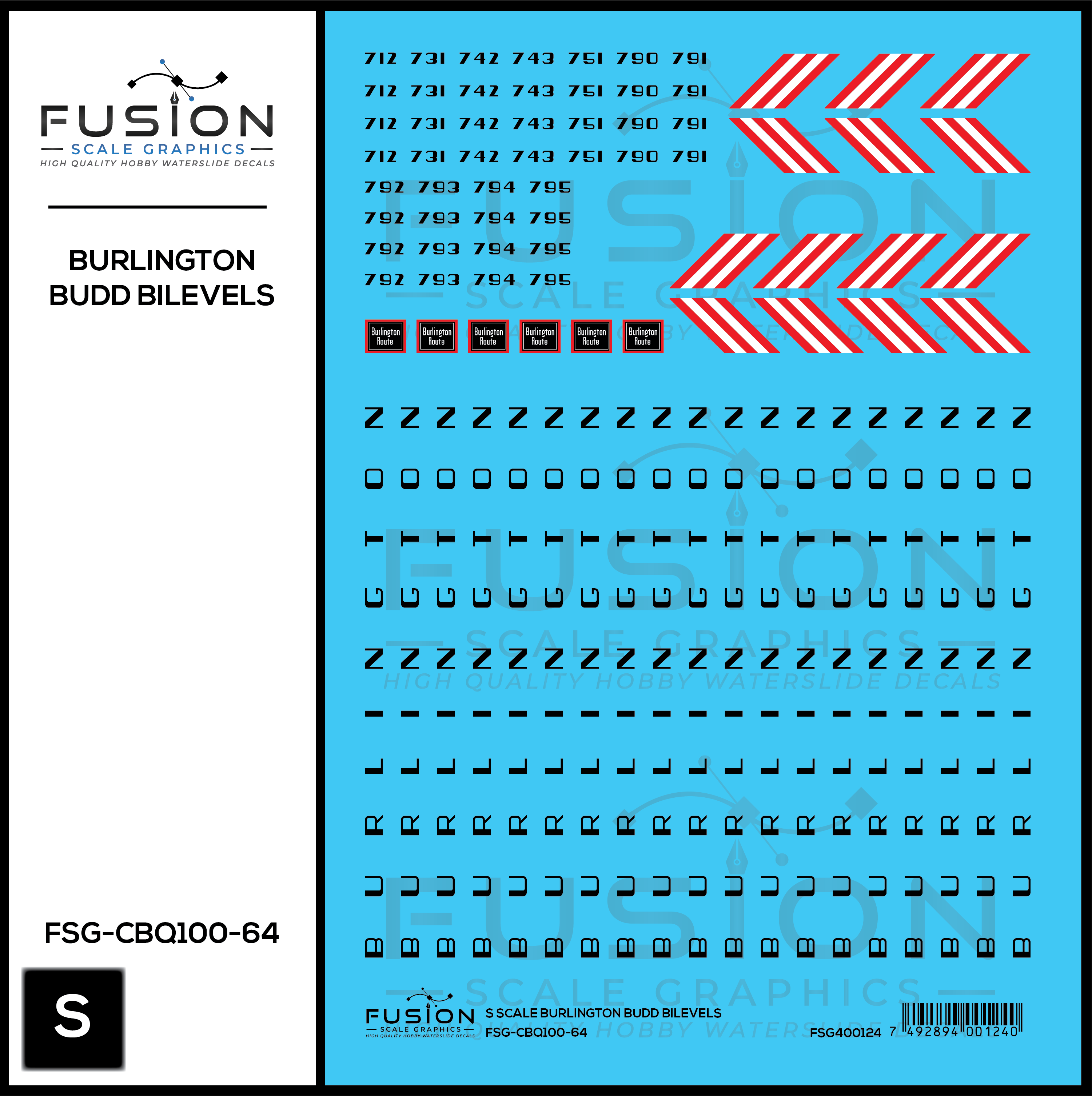 S Scale CBQ Burlington Budd BiLevels Decal Set