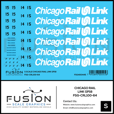 S Scale Chicago Rail Link EMD GP18 14 & 15 Locomotive Decal Set