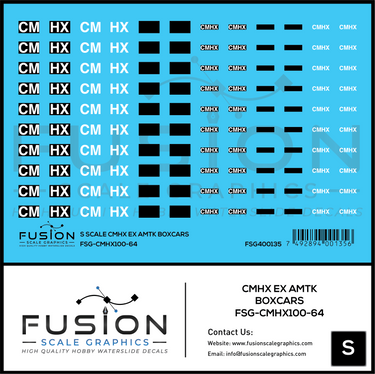 S Scale CMHX Ex Amtrak Boxcars Decal Set