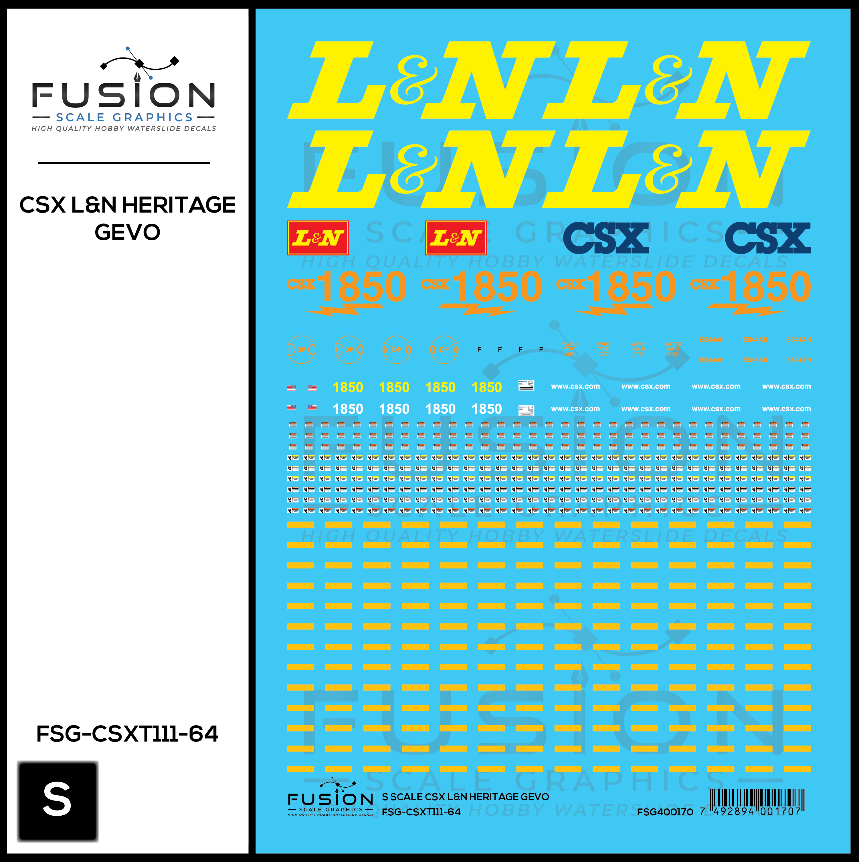 S Scale CSX 1850 L&N Heritage ES44AH Locomotive Decal Set