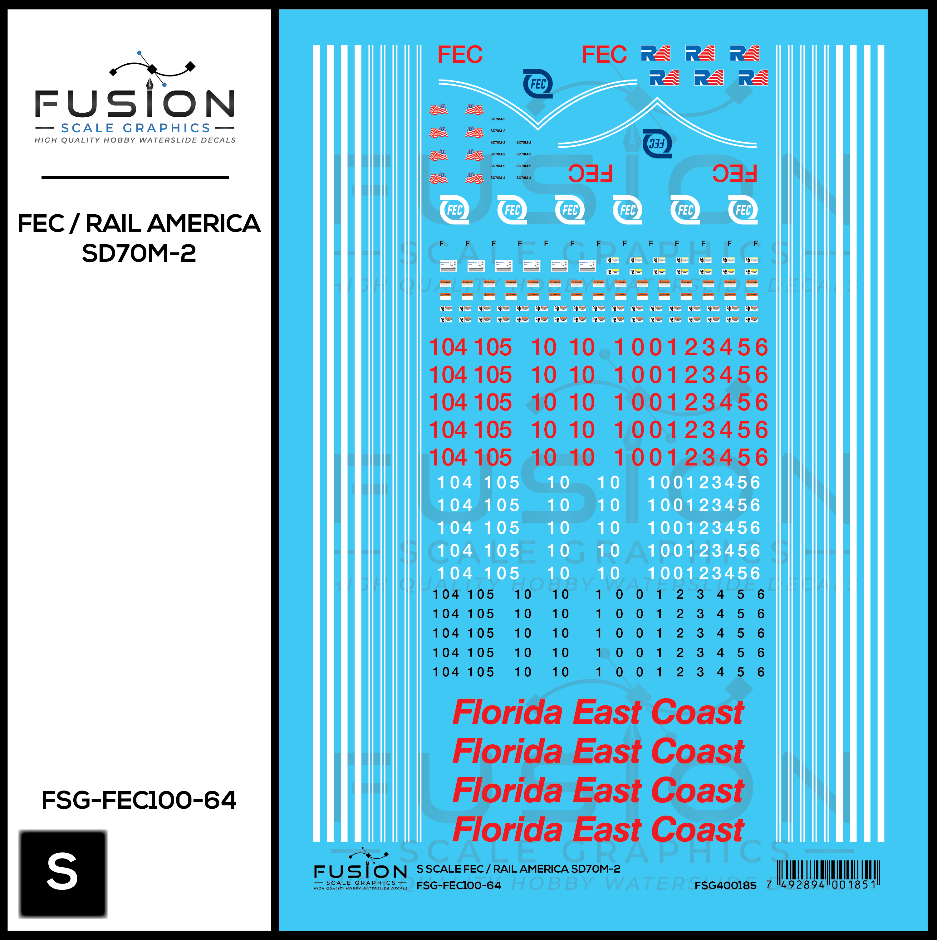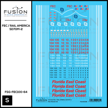 S Scale Florida East Coast/Rail America EMD SD70M-2 Locomotive Decal Set