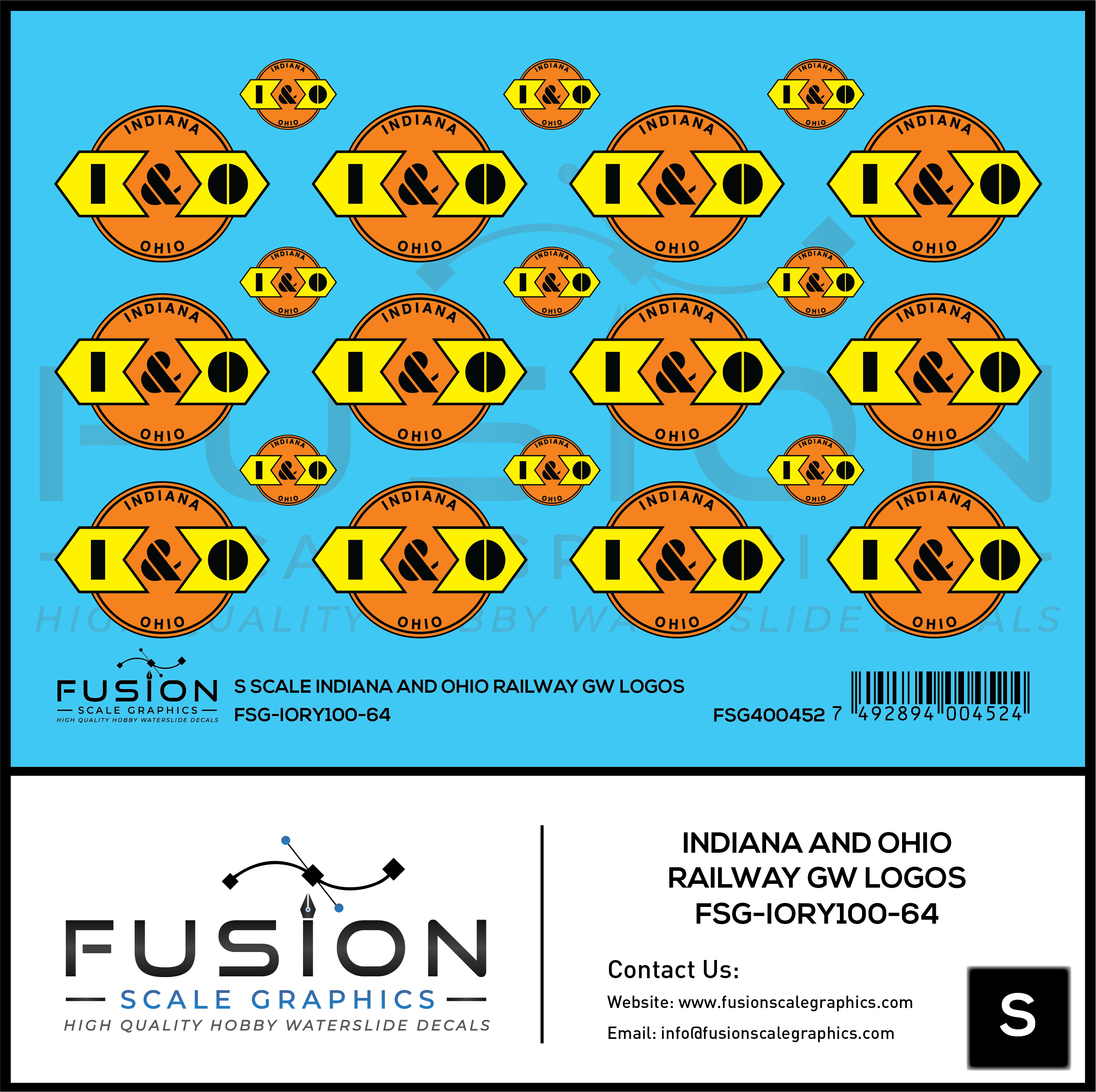 S Scale Indiana and Ohio Railway GW Railroad Logos Decal Set