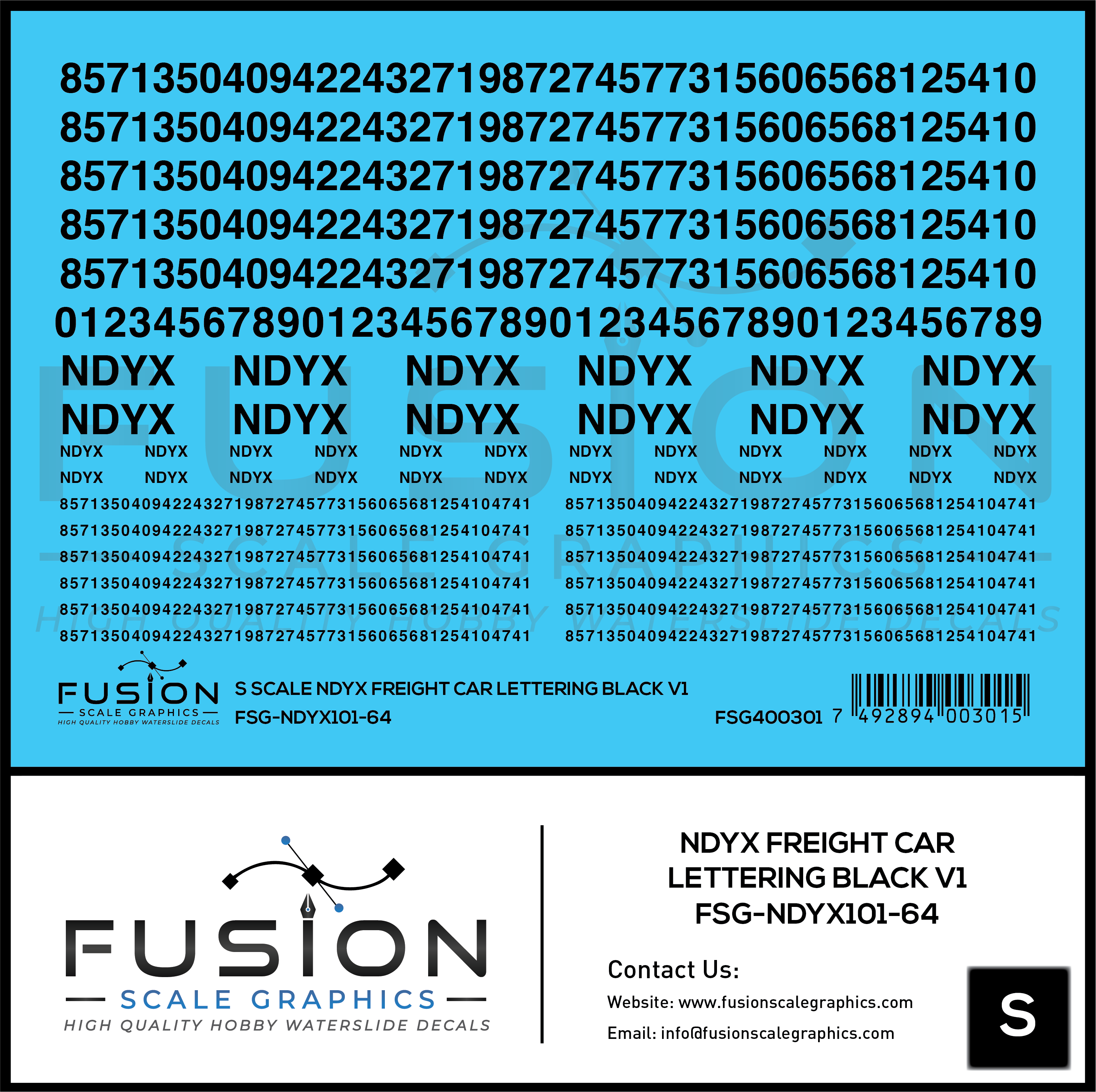 S Scale NDYX Black Freight Car Lettering V1 Decal Set