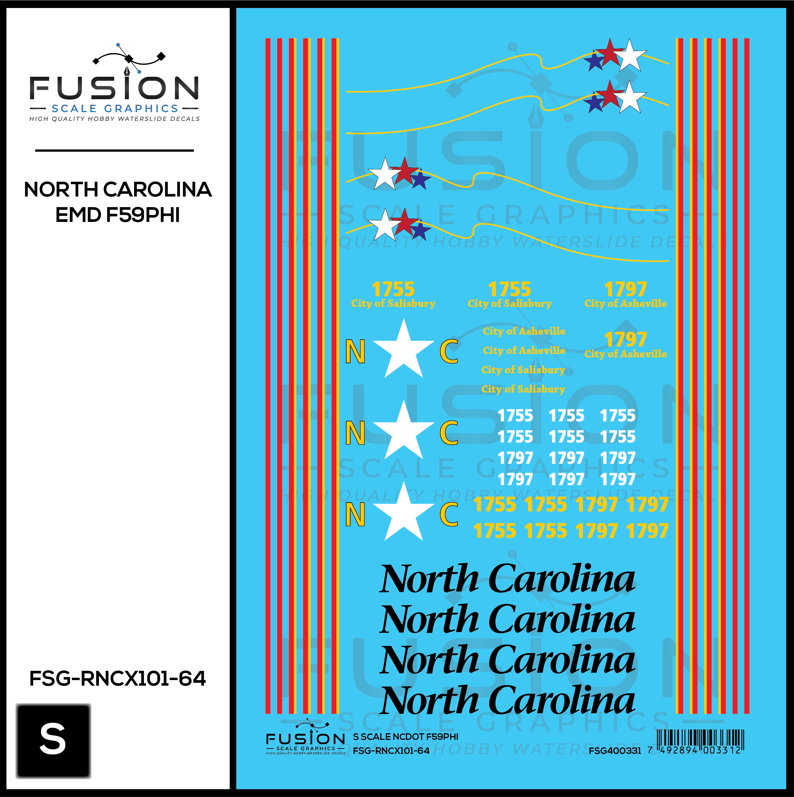 S Scale North Carolina DOT EMD F59PHI Locomotive Decal Set