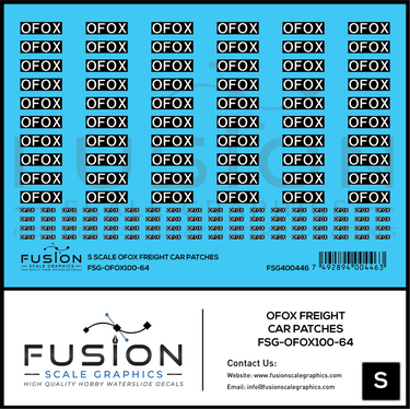 Ideal for scale model railroaders, the OFOX White/Black Freight Car Patch Outs Decal Set is designed to bring your layouts to life. Whether you're a beginner or a seasoned enthusiast, these decals offer easy application and durability, making them perfect for creating a weathered and authentic look on your S Scale freight cars. Elevate your modeling experience with decals that meet the highest standards of craftsmanship and detail.