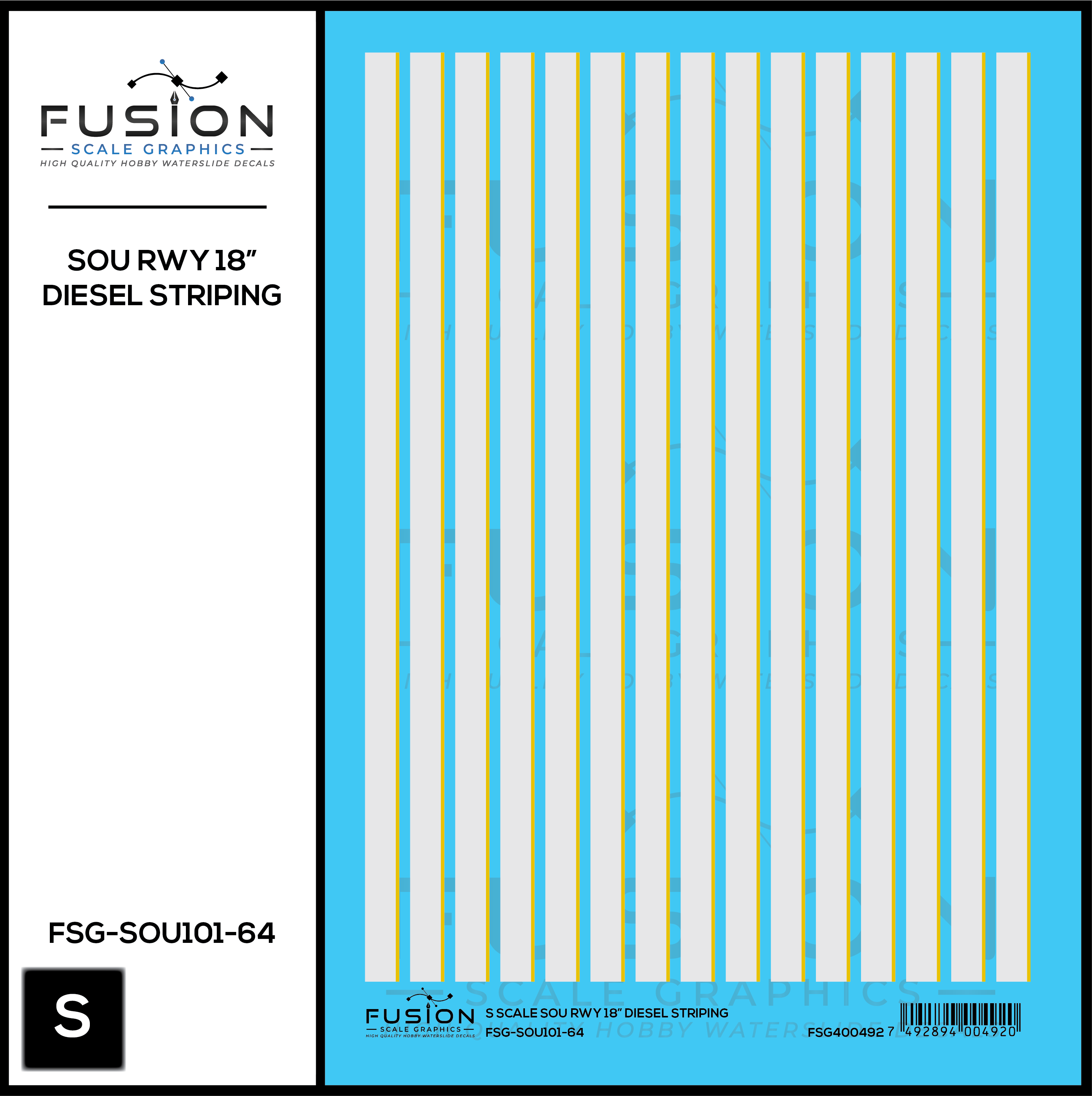 Set to be applied to Southern Railway road diesels with 18" stripes.
