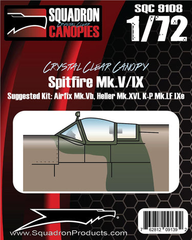 Squadron 1/72 Squadron Crystal Clear Canopy - Spitfire Mk. V/IX (Airfix Heller or KP)