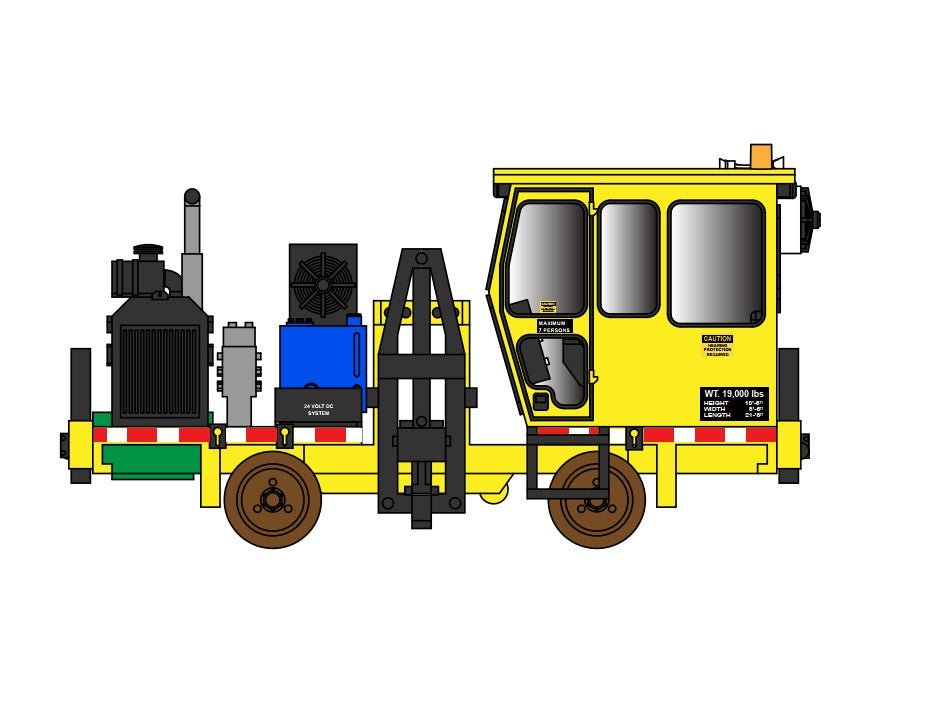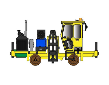 This machine pulls the old spikes out of the ties that need to be replaces. They are one of the first machines at the front of a tie gang, often in multiples of 2 or 3 machines. Each machine requires two operators, one for each rail.Â