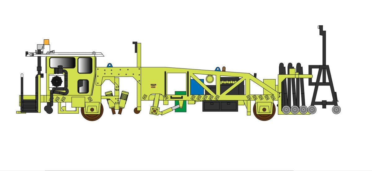 Used by CSX, Conrail and others, this represents a rebuilt Mark III tamper with new cab, steps, and self deploying laser buggy.  These units are rebuilt from older Mark III Tampers by Quality Track Equipment in Austinburg, OH.  Earliest known units date to around 2011.