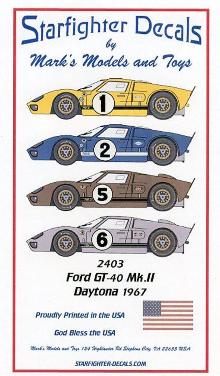 Starfighter Decals 1/24 Starfighter Decals - Ford GT40 MkII 1967 Daytona