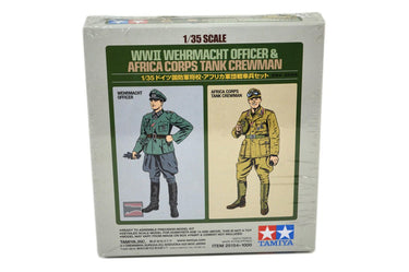 This is a limited edition set of 1/35 scale WWII Wehrmacht Officer and Africa Corps Tank Crewman assembly kit model figures which are based on those in the 1/16 Scale World Figure Series. The realistically reproduced officer figure wears an officer's cap and leggings and may be posed with a glove in his right hand. The tank crewman figure features a field cap and boots with a canteen in his right hand reproduced in a relaxed pose. These figures may be displayed with various WWII military models to enable a wide array of diorama possibilities.