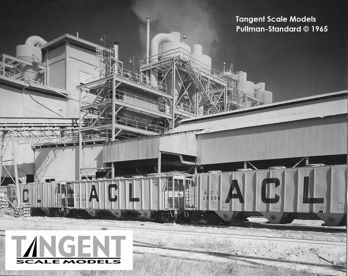 – Atlantic Coast Line (ACL) “Delivery Beige 8-1965” replicates ACL’s large 800-car order of Pullman-Standard Covered Hoppers, delivered in 1965. The Tangent model replicates the delivery “beige” scheme. The ACL letters are big and bold across the car side, and every piece of data is carefully replicated, something you have come to expect with Tangent. The models feature a see-through Apex-style running board (straight and flat!), evenly-spaced round roof hatches, body-mounted brake gear and Wine gravity outlet gates. All of these features match the prototype ACL cars. If you look even closer, the model also replicates additional ACL-specific details like the carbody side trust plates, the brake badge plate on the B-End and accurate ACL 100-Ton trucks with the retaining bolts detail. The B-end of the car features all of the brake details and piping of the prototype, including a gorgeous Ajax brake stand, modern brake wheel, Morton-style brake step, high-mounted retainer valve, wire piping details and a finely executed air release rod poking through the bottom sill on each side of the carbody. Metal corner stirrup steps and flexible rubber air hoses on each end of the car provide durability. These are sharp Atlantic Coast Line (ACL) models.