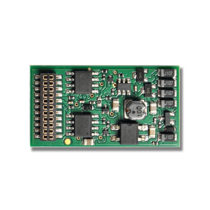 The WOW121 is a universal sound decoder for locomotives with DCC-ready 21-pin MTC connectors, and can also be used with any of TCS' motherboards. The WOW121 requires a motherboard to interface with the locomotive. The motherboard will determine the support for the number of lighting functions as well as the type supported (LED or 12V/1.5V bulbs). A WOW121 decoder will support up to 8 lighting functions.