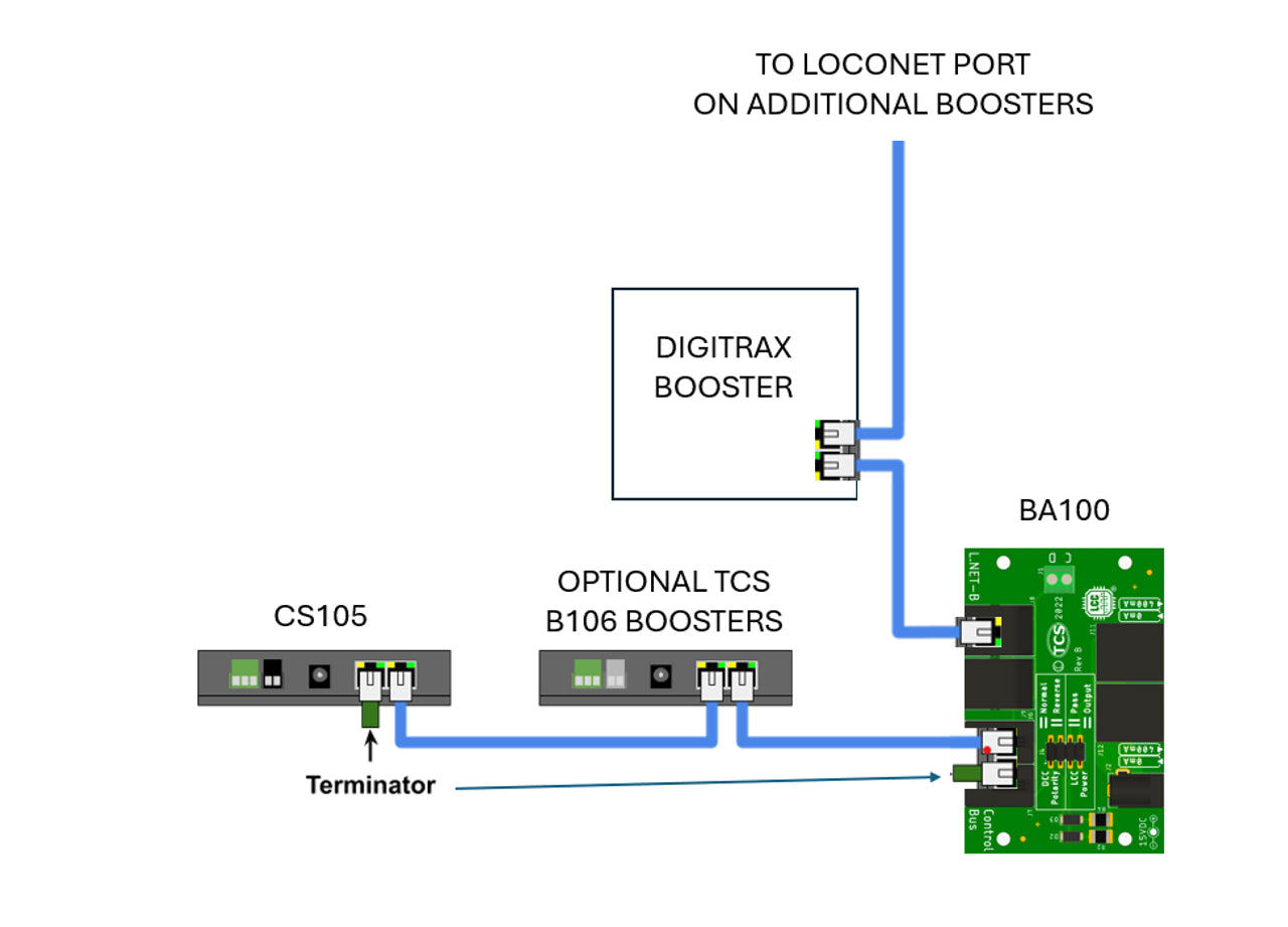 - Connecting a CS-105 to Digitrax Booster(s)