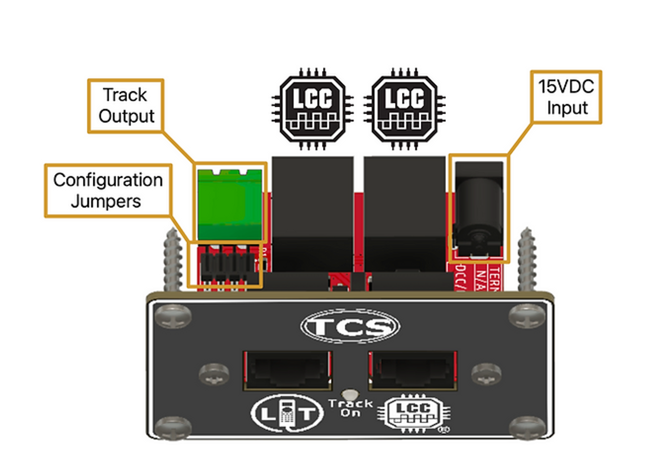 - Plug an LT-50 into the socket labeled “LT” to use as a command station.