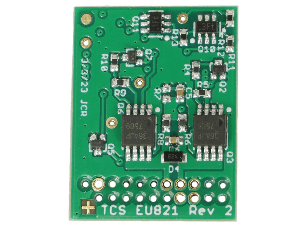 This decoder is designed specifically to meet the needs of European HO-Scale modelers. This decoder is compliant with the NEM660 standard found in locomotives equipped with the MTC 21-pin socket. The EU series decoders are compatible with all of TCS' motherboards, or any locomotive equipped with the MTC 21-pin socket.