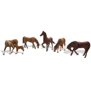 Two foals and four adult horses complete this set. All six are a beautiful chestnut color, some graze and others stand, heads held high.