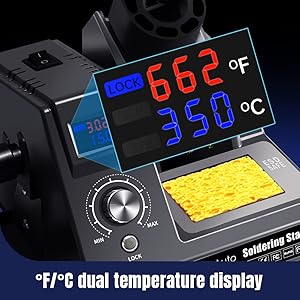 •  DS90 soldering station is a high-quality, low-cost °F / °C dual display 90W &ESD safe anti-static soldering station.