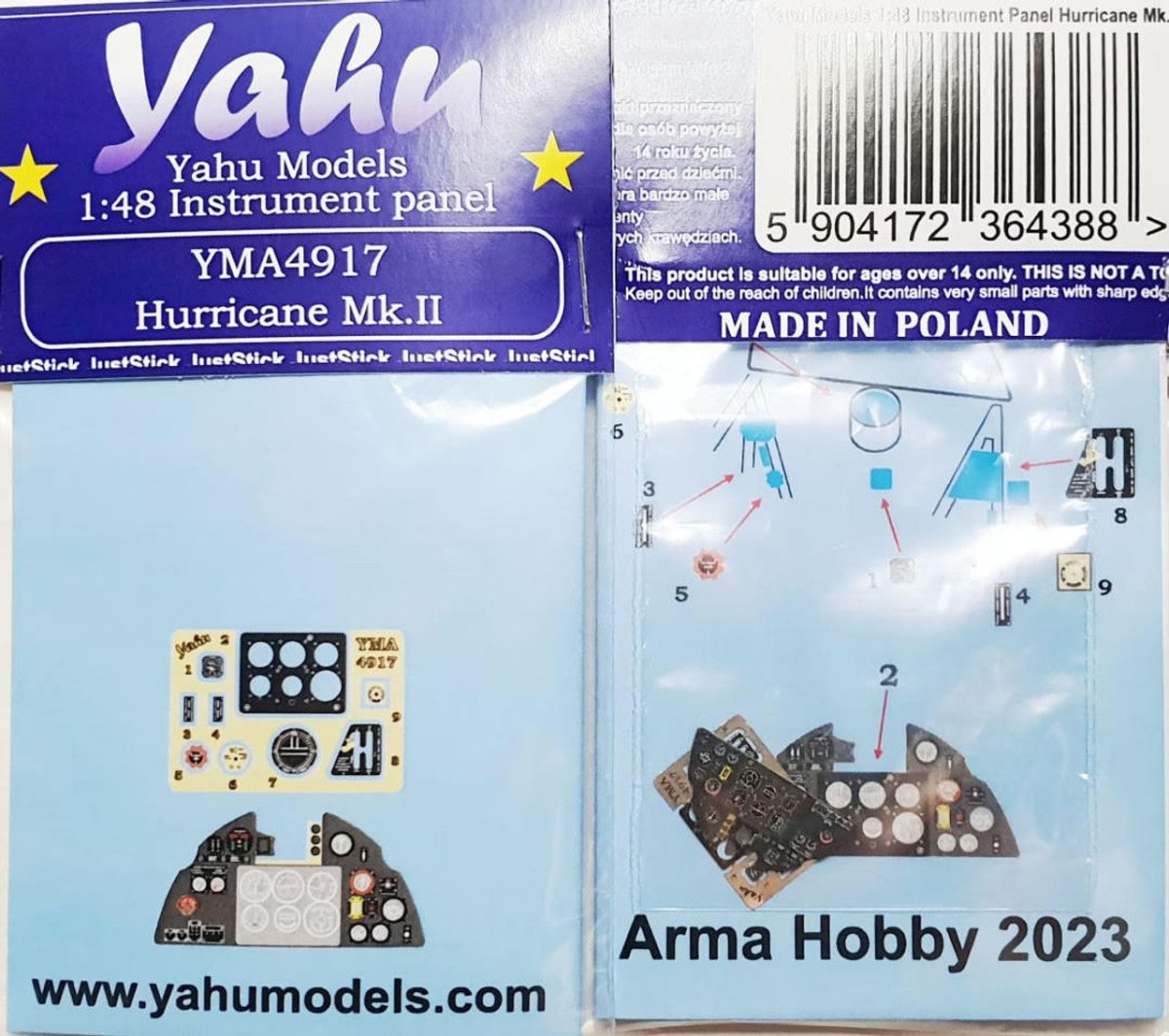 Yahu Models 1/48 YAHU Models Hurricane Mk.II Instrument Panel for Arma